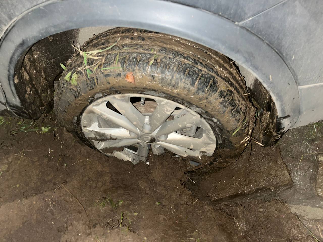 прошу помощи, застряли в грязи на проселосчной дороге. Не можем вылезти уже порядка двух часов, по уши в грязи