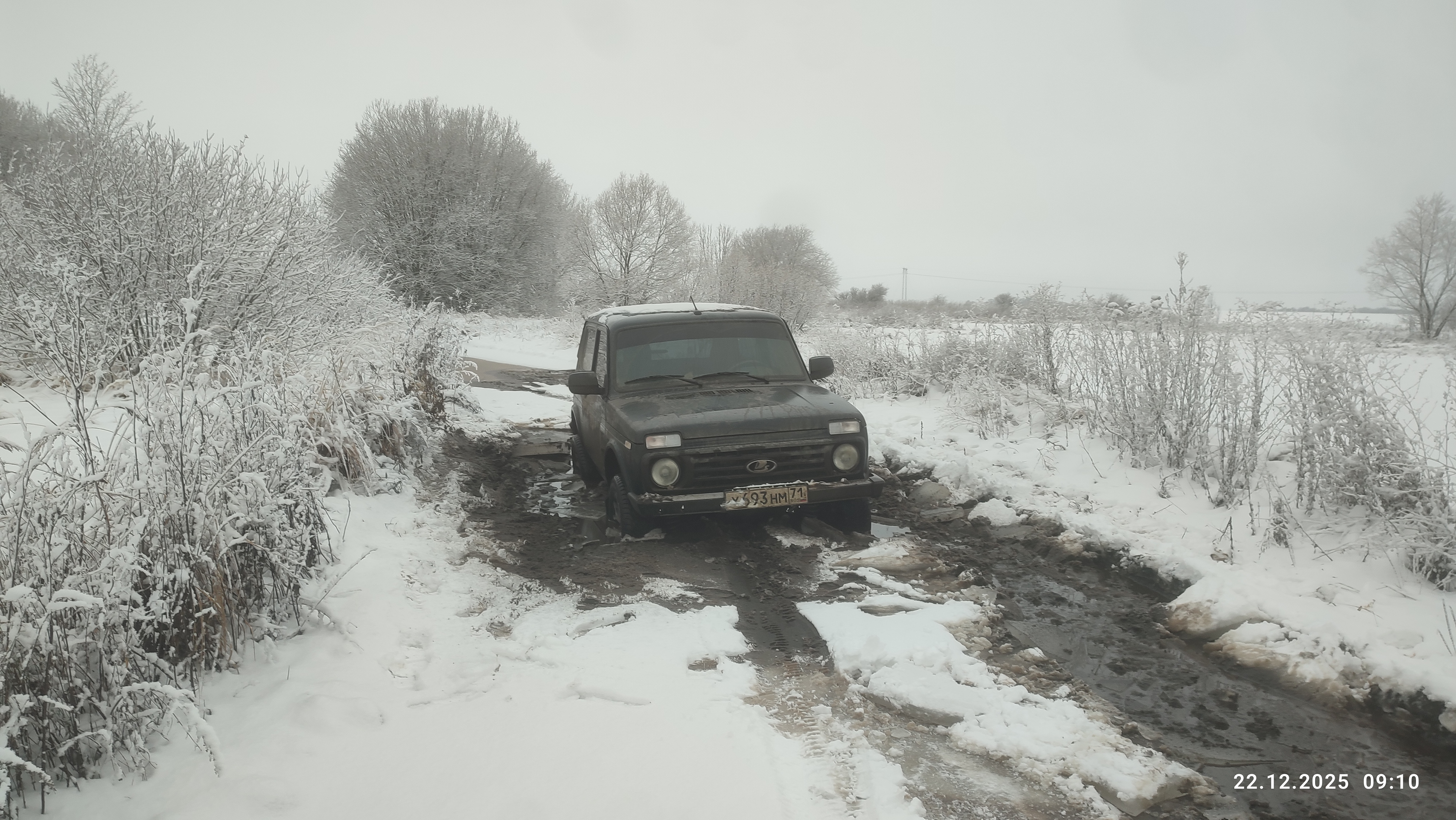 Помогите выдернуть, проломился лёд под колесами.