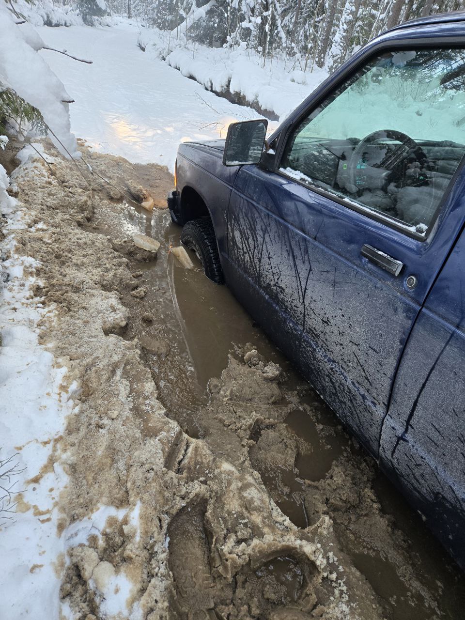 Прошу помощи, вытащить машину, дернуть метров 5-10. Застряли на лесной дороге, провалились под лед, преимущественно передними колесами, пытались выдернуть своими силами смогли сдвинуть только на пару метров потом морда опять зарылась.