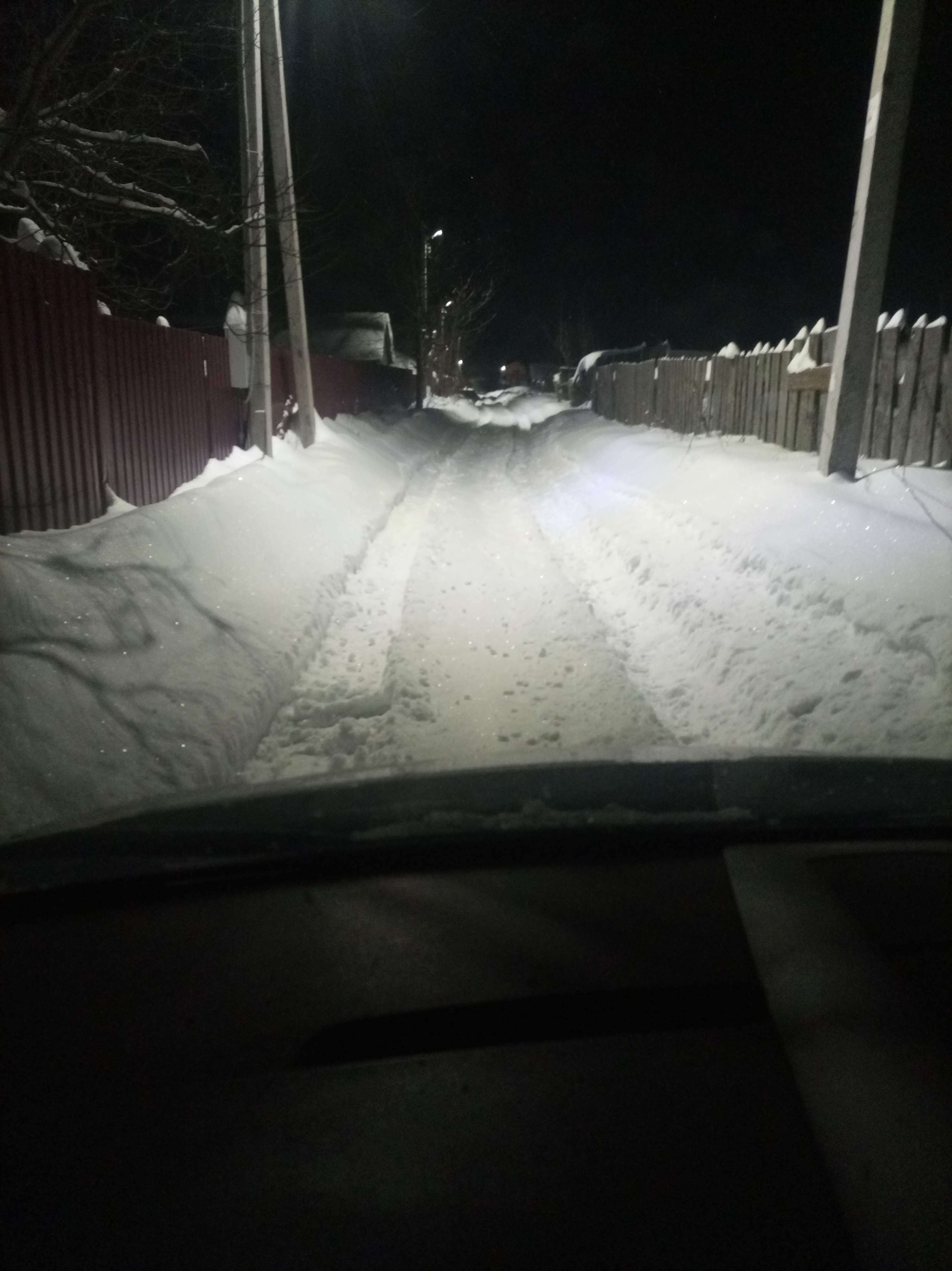 Заснеженная деревенская дорога, снега по пол колеса примерно. Дёрнуть назад. До нормальной дороги метров 100