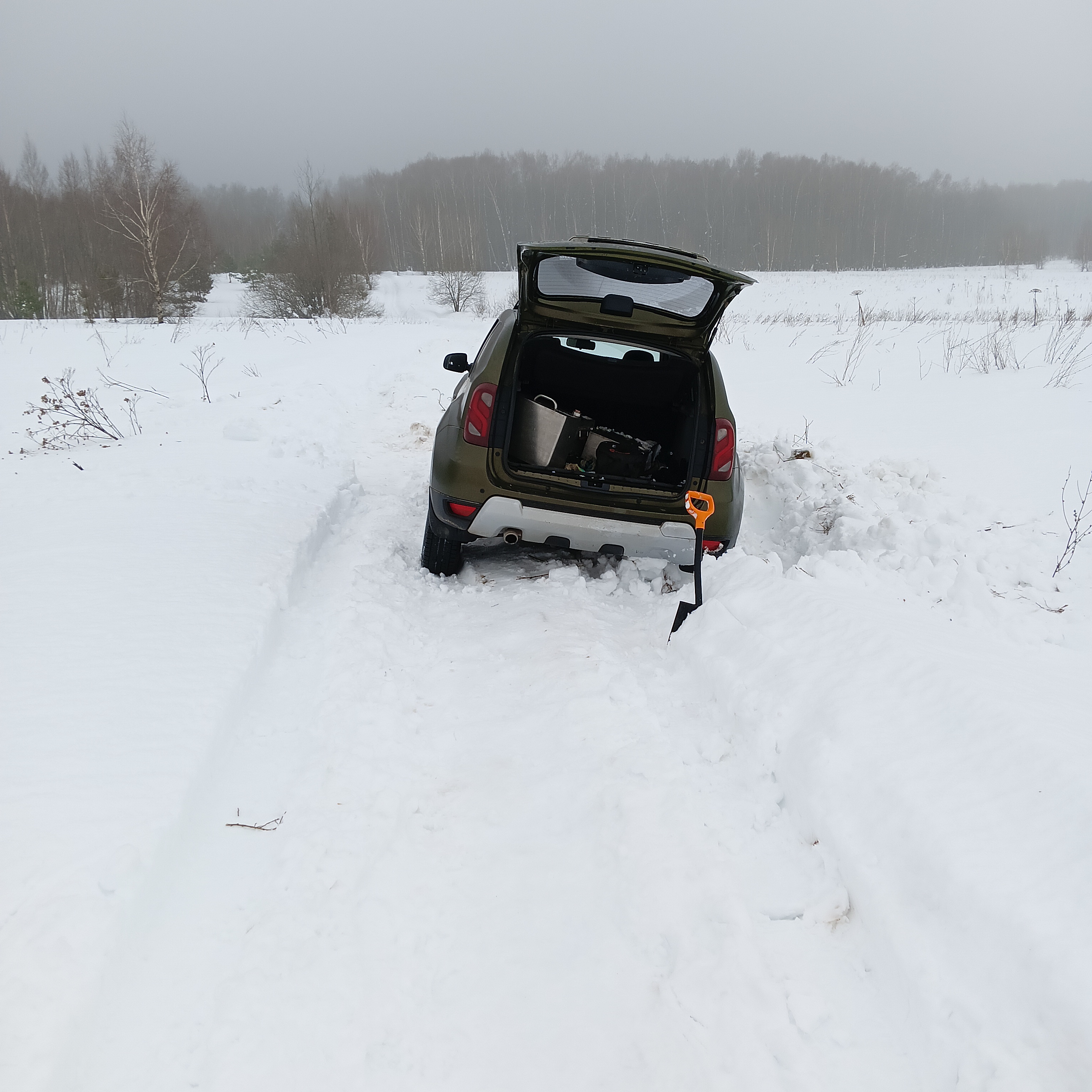 Застрял в снегу в поле. До нормальной дороги метров 300