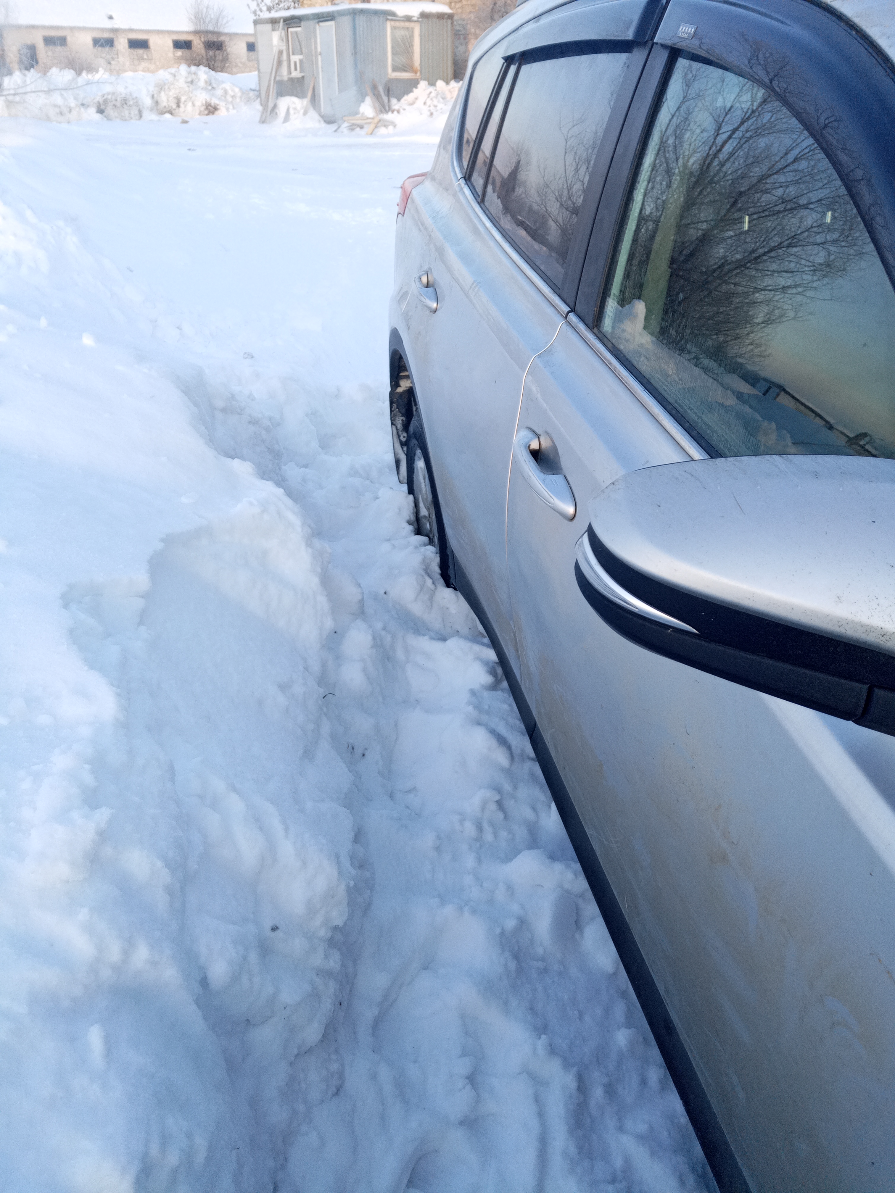 Съехала в сугроб и села на дно . Попыталась откопать,но буксует