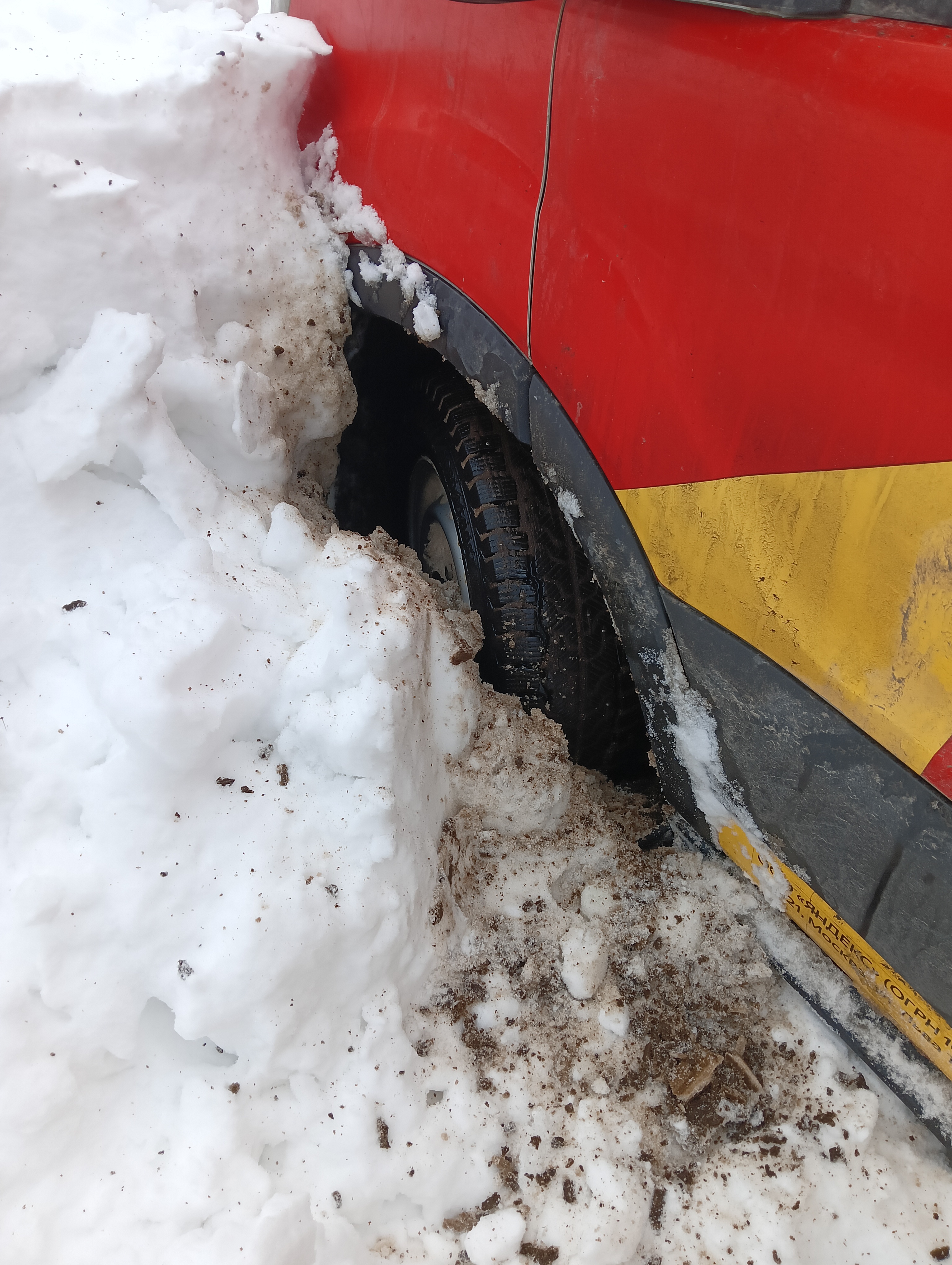 Застрял на заезд территорию частный дом, закопался почти на пол колеса, к сожалению лопаты нет, немного назад дернуть бы